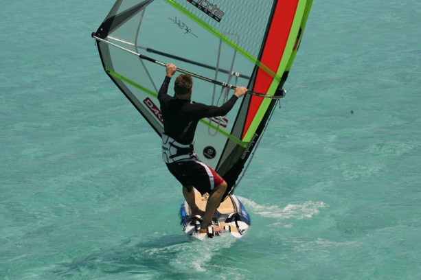 If you are the competitive type, then how about some racing? There have been various formats over the years, some replicating triangular yacht racing courses with upwind and downwind legs. Yet the most exciting windsurfing racing is downwind slalom, where races are held in heats over a short course with five or six fast gybes as they zig-zag downwind to the finish. Each race lasts about 2-4 minutes and is very intense with a very high-speed start and tight congested racing at each mark, which is great for spectators when the racing is held close to the shore. Various brands have team riders who use and develop the latest kit, which you can buy and use. But buyer beware, it’s very powerful stuff. It’s not uncommon for racers to be using 7-9m massively powerful sails in the same winds where recreational windsurfers are using 5-6m rigs. To get into racing and other types of events, we’ve listed the various paths you can take through the sport in our Sport Pathway section. Will you ever beat Bjorn Dunckerbeck, He’s the sports most successful competitor ever, with over 32????? world titles!