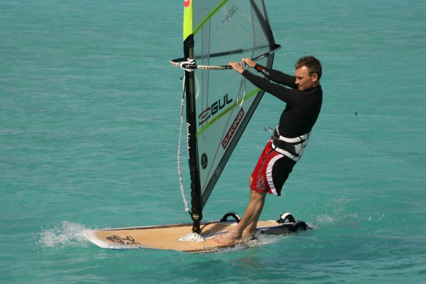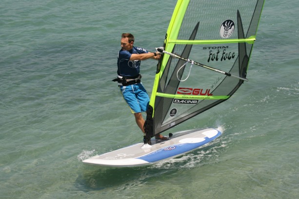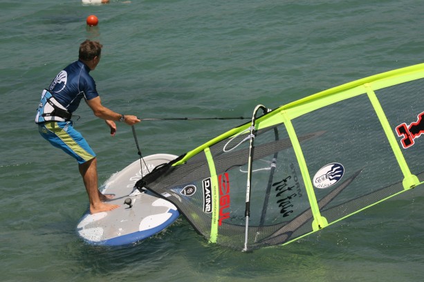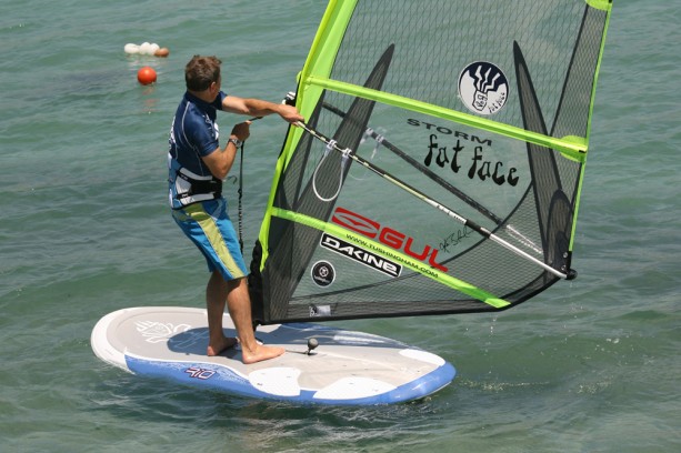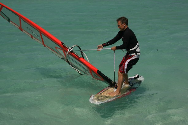 With practice experienced windsurfers uphaul boards so small that they sink well beneath the water until they have sufficient wind to get up and blasting!