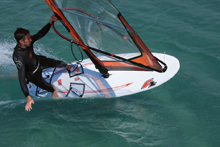 The hull weight is very low considering the asking price, however one or two of the fittings could be improved. There is only one set of strap positions and while these are nicely placed for the great majority of sailors alternative choices could extend the appeal of the board to both early intermediates and for more slalomy ‘on the rail’ blasters. Comfort could also be improved slightly with better doming and contouring of the front pads. The fin works well in most lighter conditions but is perhaps a shade long and stiff for optimum feel and performance over the widest possible range.
