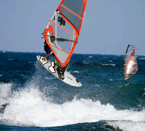 On the water: Stepping onto the Quatro immediately feels great because the board’s size seems perfectly matched with a 5.3 or 5.0m sail. The board isn’t the quickest to plane, but once up and going it feels relatively fast. The Tempo would be a great firsttime twin-fin because it forgives poor technique and mistakes from the rider – you almost feel like you can get away with too much! It isn’t the most radical rail to rail, but is loose enough to turn relatively tightly in onshore conditions, providing the opportunity for that all-important smack. T The board handles being well powered admirably, and on occasions it performed better in these conditions, holding its rail really well in the bottom turn. And during the top turn it was great for sliding the fins out, giving the rider that awesome surf-style feeling.
