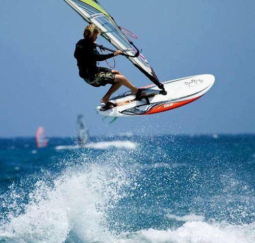 On the water: Considering its large amount of tail rocker the Quad is relatively quick to get planing, which is surely down to the pretty large fin area underfoot. It feels a little strange when you first get going as all four fins take time to engage, but once that happens you can aim it wherever you want. You can almost point directly into wind and it w will keep planing! The Quad is very good for jumping as the large fin area gives you something to push against when you reach the top of a ramp, but its real forte lies in riding. On the one hand, it’s super-loose and you can change your angle of attack in an instant, but on the other it grips like nothing you’ve ridden before. You can’t slide the tail out quite as easily as you can on a twin, but the extra drive you gain during the bottom turn means that you don’t need to because you just go for an aerial instead! We found that the bigger and the smoother the waves were, the better the Quad performed.