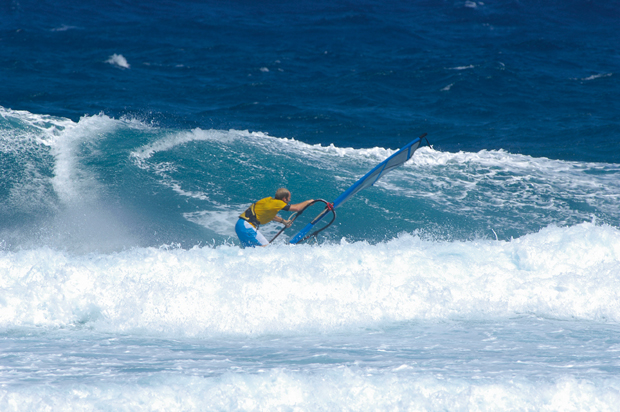 Then come the Fanatic NewWave and Naish ProWave. Both are quite similar to the JP Pro in the degree of skill needed and the potential rewards, but are a bit faster-rockered and wider-tailed, thus suiting less consistently strong winds and working slightly better in smaller and more onshore conditions. The NewWave was the more popular and is slightly faster and more exciting, but a shade more hectic. All these boards so far have a slight riding bias though all work fine as all-round waveboards.