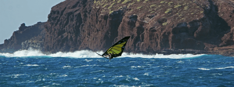 A: For me personally I feel the main advantages are the extra range you get from the sail, The shape as it comes directly out from the boom and straight down to the clew, this means you’re always holding on to a straight line, you don’t have to change the angle that your holding the boom when sliding it up and down the boom during manoeuvres or even jibing! Holding onto a straight line gives you a much more powerful grip on the boom. The Suspension system is brilliant in choppier water and for landing jumps, I’m sure the boom has saved a few of my boards by now!