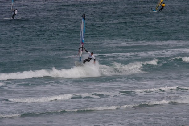 Today Balevuillen produced some up and down conditions, with light starboard tack conditions and some small waves coming through the bay. The competition got going with the amateurs in the morning; all the amateurs performed well in the light tricky conditions. Will Barrett lost out on a place in the final with a very close decision, each judge having a different winner in his heat with Scott McDowell and Alfie Hart. In the final Tom Bennett-Lloyd took fourth position with some great wave riding, Scott McDowell finished just ahead in third. It was a close battle for the top spot in the single elimination, but it was taken by Ian Ross just ahead of Alfie Hart.