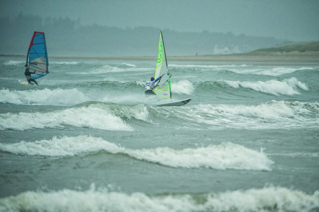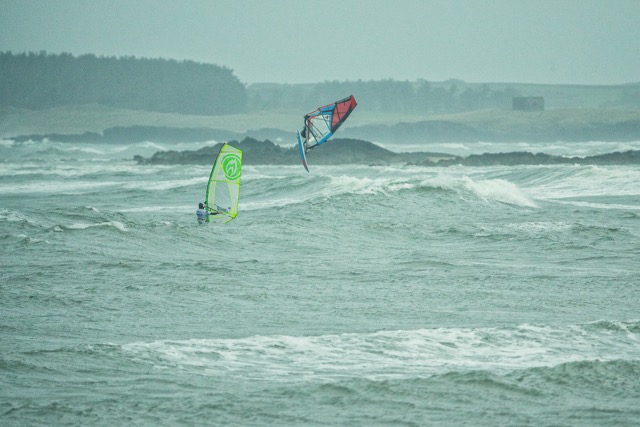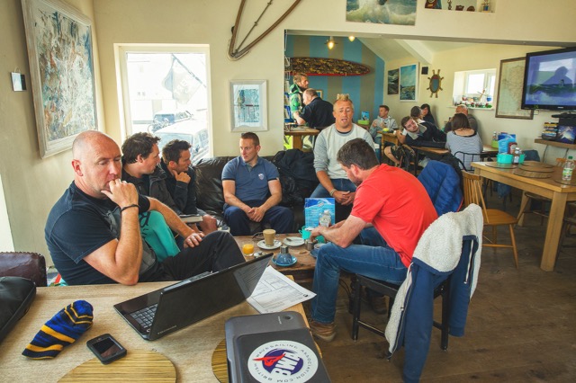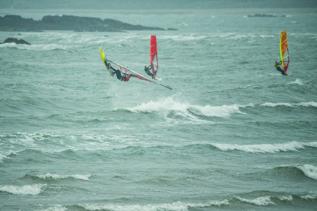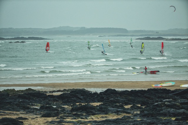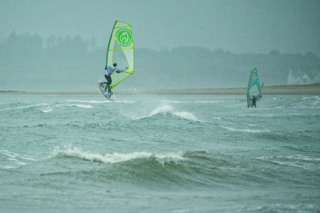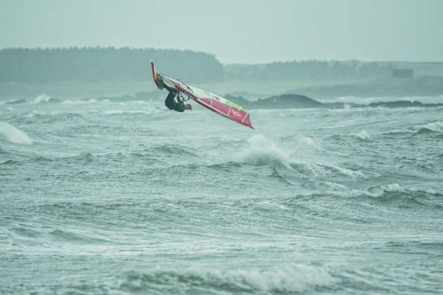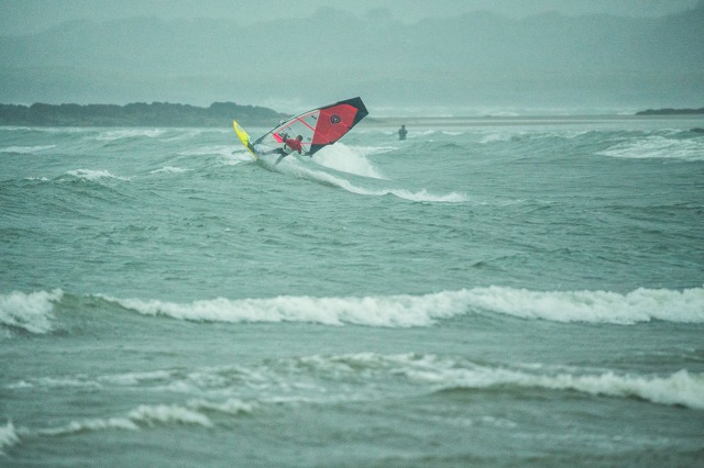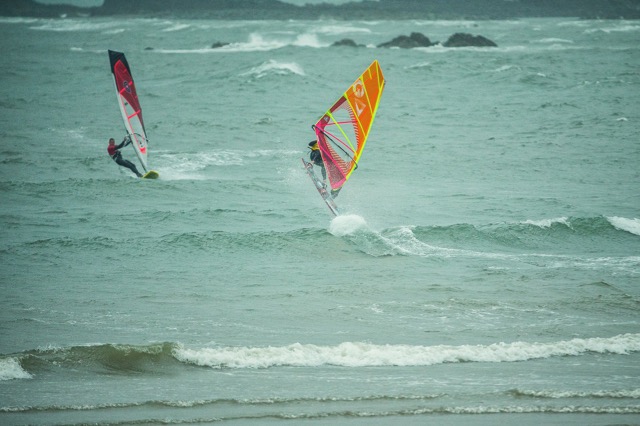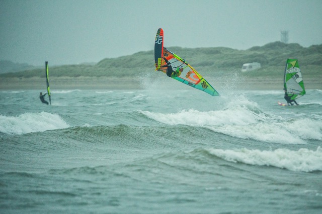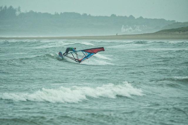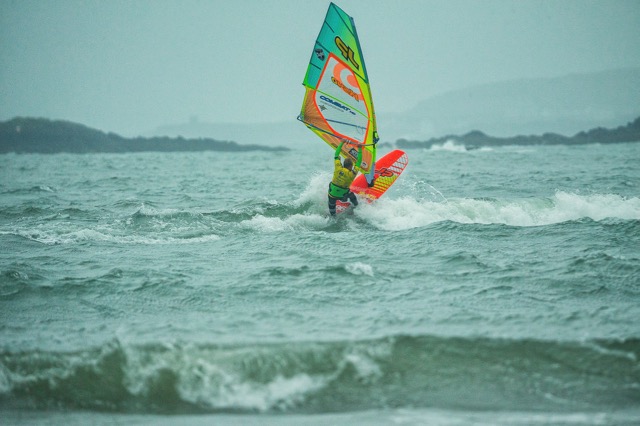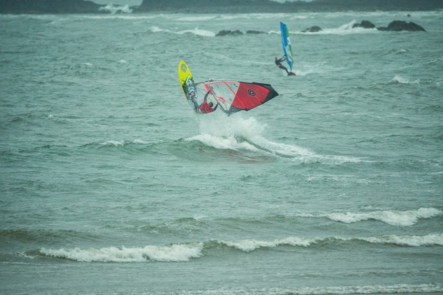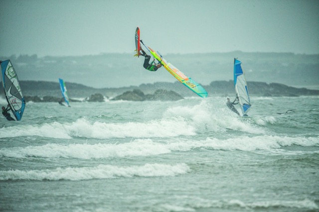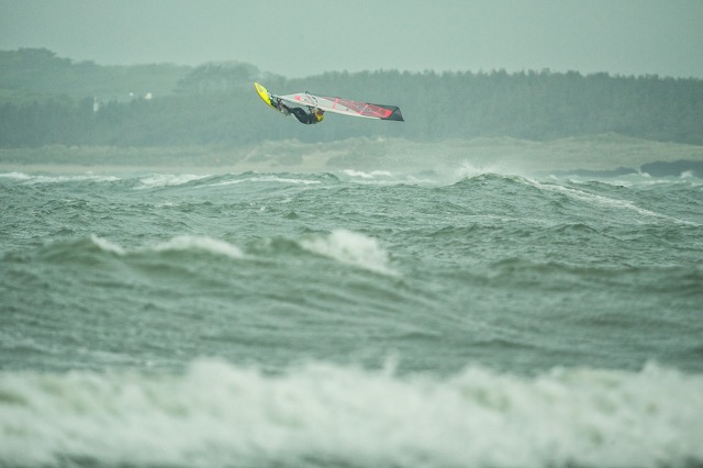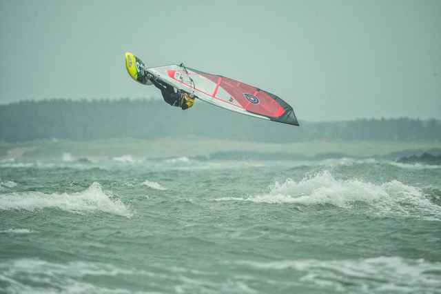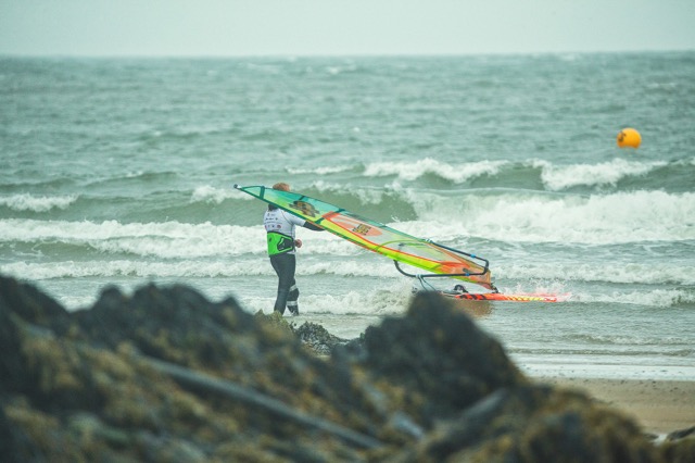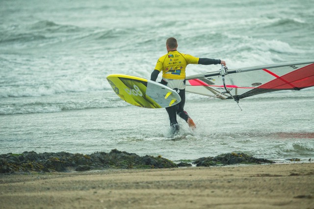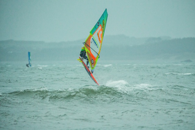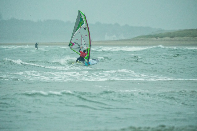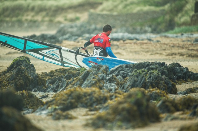 After a very early start this morning, the pros were able to complete their first elimination. Conditions were reasonably good (considering the low swell forecast) with head high waves and 4.7-5.0m weather for most. Adam Lewis took the win ahead of Phil Horrocks, Andy Chambers and Andy King. Simon Crowther braves the wet weather to shoot the action, so here are his pics of the pros. Amateurs, Masters and Ladies will follow.