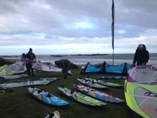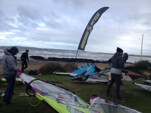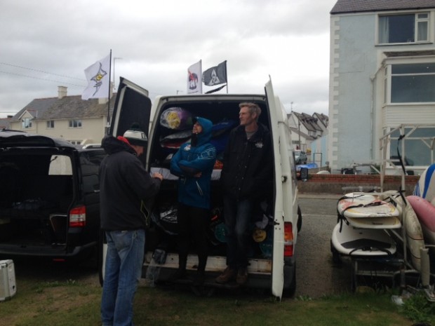7:10 – Morning and welcome to day 2 of the BWA Wave Champs in Rhosneigr. And today we have some wind!! Its pretty onshore at the moment but the forecast is to turn more sideshore later. Sailors are surfacing ready for 7:30 briefing…
