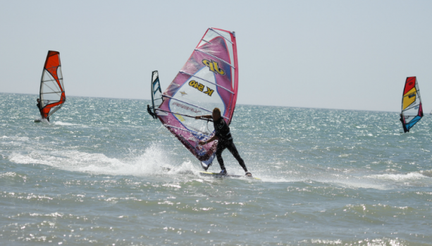 Saturday morning we awoke, hoping that some of the wind from the night before would have stuck around. First thing it was relatively calm, but through the morning the wind built to approximately 13-14knots, light but solid slalom racing conditions.