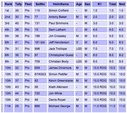 The pros final then took place, with some more confusion and additional riders taking part. At the first gybe mark I was in the lead, but struggled to maintain my speed over the first reach and was overtaken by Simon Cofield. Cofield kept his lead throughout the race, proving he still has the speed in light winds. I finished in second, with Starboard/Tushingham main man Paul Simmons, finishing in third.