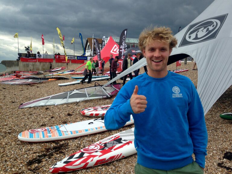 Fast, early planing, super light, with a slight bias to back foot blasting (not one to be burned off by his sailing buddies!) with the ability to work well and get into his new local surroundings or a Daymer Bay type situation in 6.0m – 5.3m conditions, with a bit of gusty 4.7 thrown in.