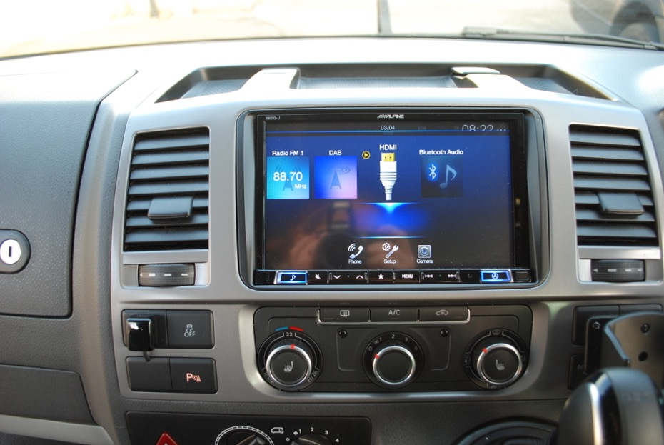 Generally the factory supplied head units are not that great and the integrated sat nav options are very expensive. We supply all types of in car entertainment, but a popular option at the moment is the new Alpine X801DU. This is a head unit that we have worked directly with Alpine on to get a screen angle that eliminates glare thanks to a specific T5/T6 fitting kit. The unit has an 8” screen with sat nav and is probably the most future proof as it is the only model on the market at the moment with both HDMI in and out allowing you to feed input into the head unit directly from your phone and back out to a larger screen (in the rear). Price – Alpine X801DU £1140+ VAT (fitted) and rear screens from £260 + VAT (fitted)