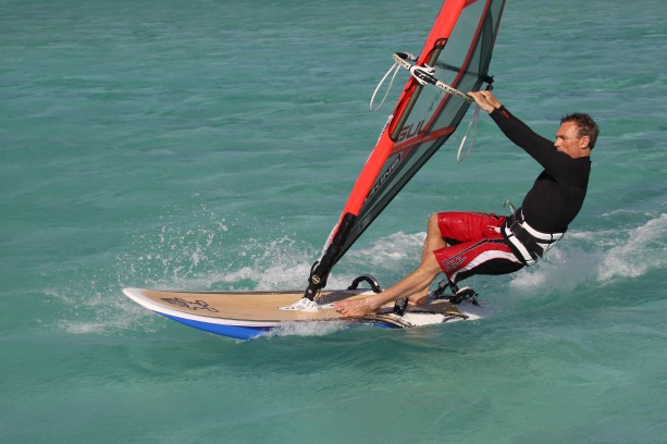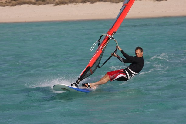 Once you’re comfortable in the harness and straps, you’ll be able to use larger sails and reach planing speeds. On modern equipment, it doesn’t take long to progress enough to experience the thrill of skimming over the water at about 20 Knots. It’s a sensation you’ll never forget and want to repeat as often as possible. Initially, sailing in stronger winds can be physical and you’ll have an increased number of dismounts, but that’s half the fun of learning! If you work on your stance you’ll become more assured with your actions and soon be sitting back and enjoying the ride.
