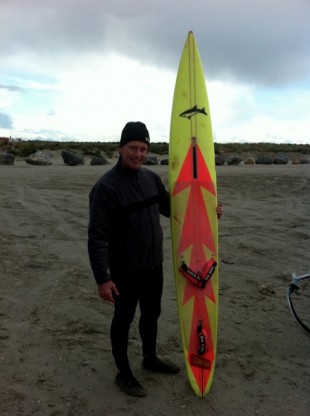 And let’s not forget to mention Ian Richards, who just had a spectacular session (check out the Boards interview with Ian here) and set the Kirby record for 10 second run and peaked over 50 knots, on a 2006 Fanatic Speed Board and Pryde Race Sail – showing that it’s not just the latest and greatest that will work! It’s much more important to match the size of the gear to your body size, get used to it and get it tuned up to work for you. Confidence in your kit is everything, and if you are fighting it (from too big a board/fin or badly rigged sail) – you are not going to be fast.