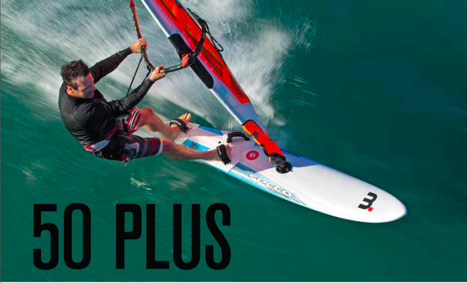 Fanatic Peter – The 50 is the light-wind speedboard for lighter guys and the mid-wind board for the heavy guy so there is a different range of use and, of course, the lighter guy needs to put the straps a bit more forward on the board to be able to trim the board the same as a heavy guy. With the right tuning the light rider can benefit from the controllability of the speed 50 big time!