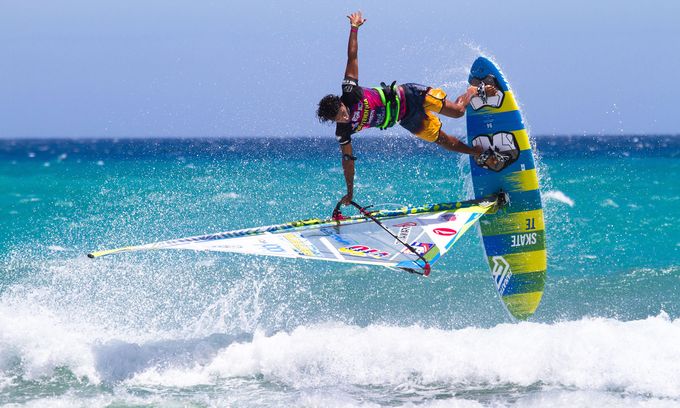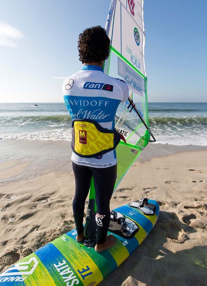 “Skopu into Funnel!” Once again Gollito Estredo amazes the crowd of spectators at the Brandenburger Beach during the World Cup in Sylt. The tow-in session is currently under way. He doesn’t move quite as much as in a normal session, during which he, in typical Gollito trademark style, pulls a new trick pretty much every 100 meters, yet still blows the minds of everybody watching. He jumps and rotates with his board and sail literally stuck to his feet and hands. Back on the beach he talks shop with Pierre Mortefon about their harnesses. As opposed to Gollito, Pierre competes in Slalom and thus usually sails overpowered with a rather stable board and in an upright and relatively rigid fixed stance. Therefore, he is looking for different features in a harness than the freestyle-king Gollito. We notice immediately that their harnesses differ rather considerably from one another. Gollito is wearing his ION Pro-Model “Maddoxx” and Pierre the “Radium”.