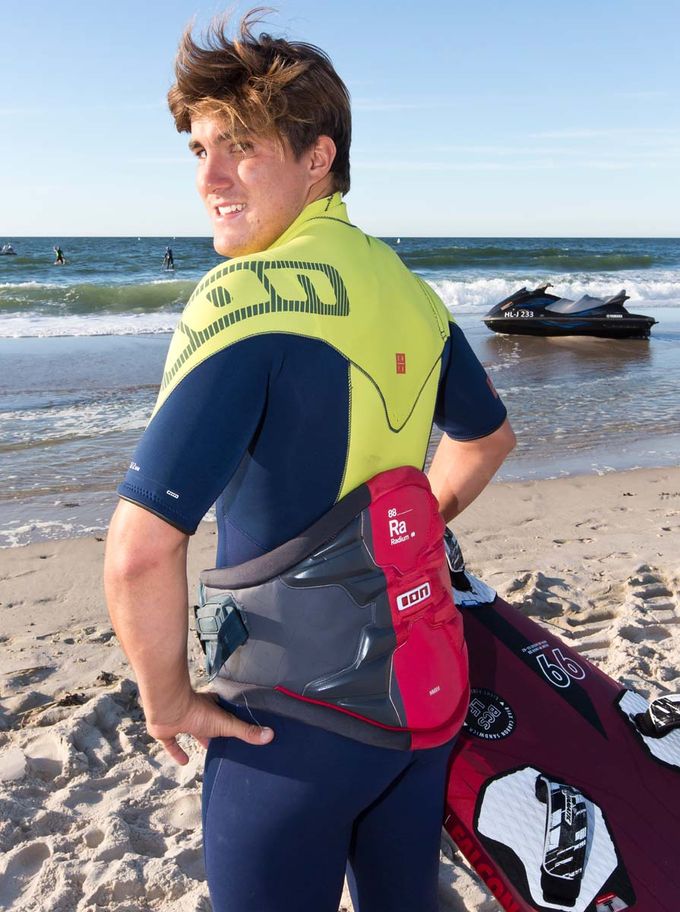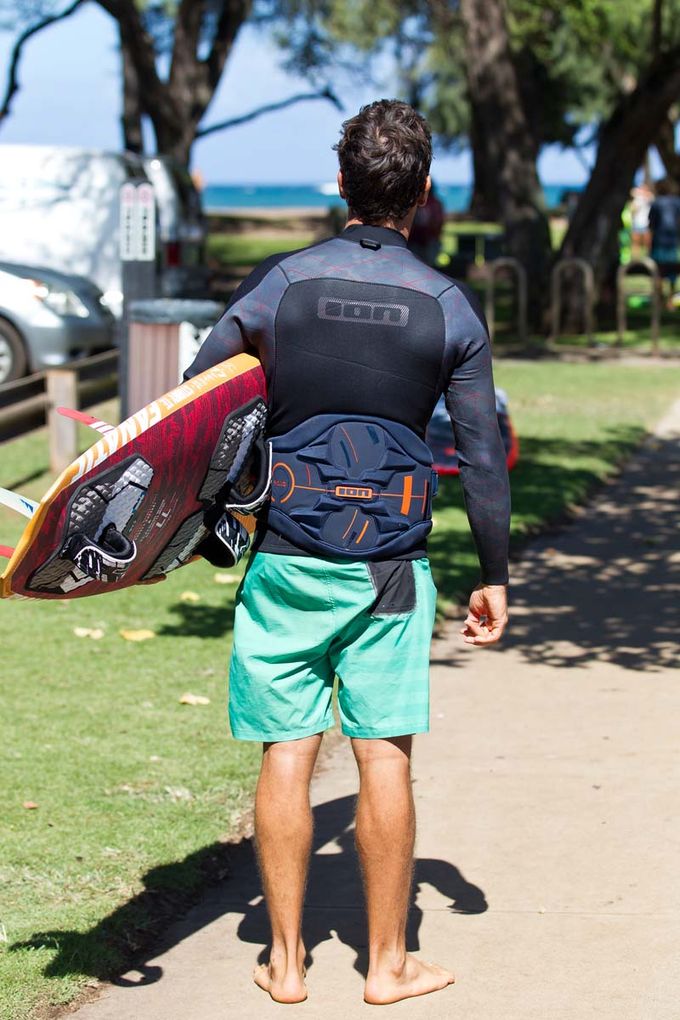 We are at Kanaha Beach on Maui. Victor Fernandez is about to hit the water to test some wave sails. We can see the ION Radius around his waist. “Yeah, usually I’m also wearing the Radium just like Pierre Mortefon. It’s without a doubt my preferred choice. Though, I recently got the Radius to test. Particularly in lighter winds the harness feels really light and comfortable”, he remarks, although the Radius has been designed rather stiff and cut considerably more slimline than the Radium. The thought behind the design is to achieve ideal freedom of movement with a good level of support. Before jumping on his board, Victor adds “That’s why the Radius is a good alternative for sessions in less radical conditions!