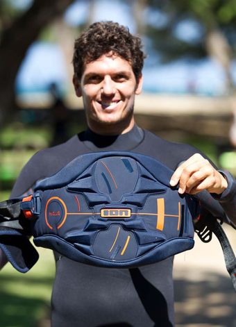 Already at first glance it is obvious that the harness of Pierre Mortefon, the PWA Slalom Vice World Champ 2015, is much higher cut and wider than Gollito’s model. We decide to take this opportunity to have a chat with the two pros about their experience with harnesses. ION’s harness range alone comprises over 30 models!