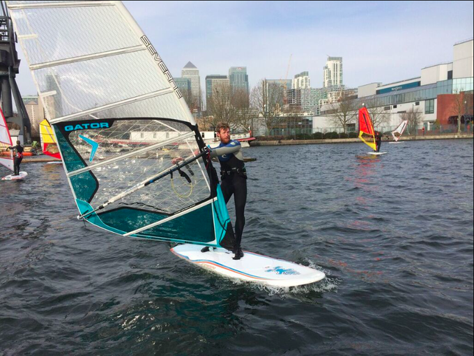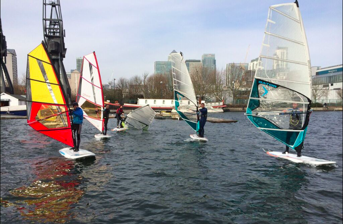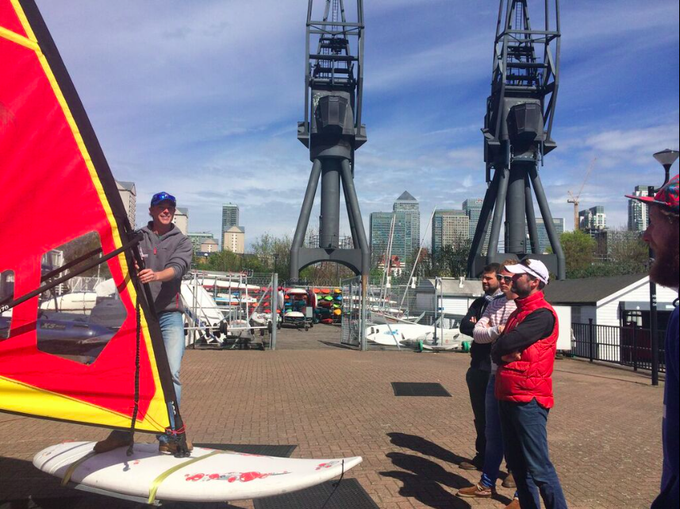 Against the backdrop of Canary Wharf, seven instructors are balanced on brand new Tushingham Starboards and hauling virgin rigs out of Millwall Dock. It’s early April in the heart of London City and the sky is pristine blue. There are a lot of smiles.