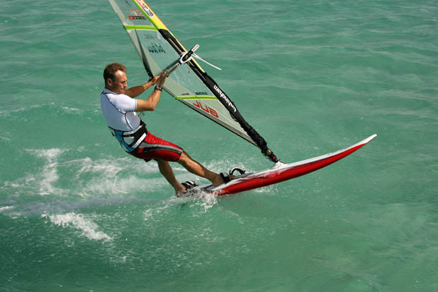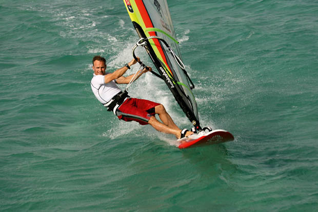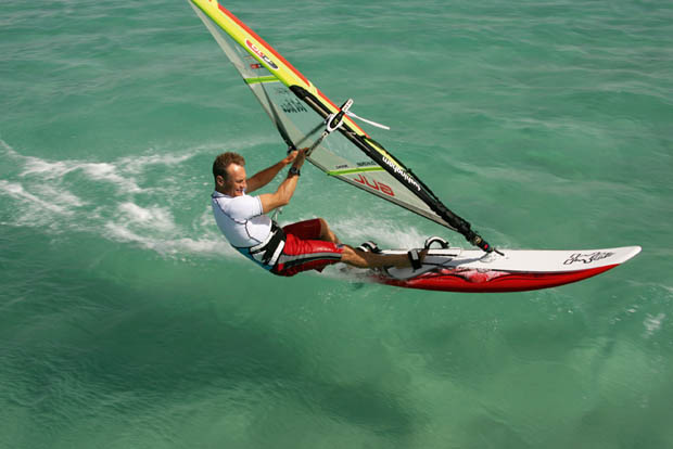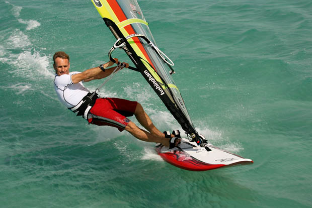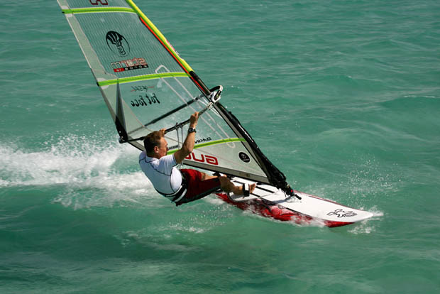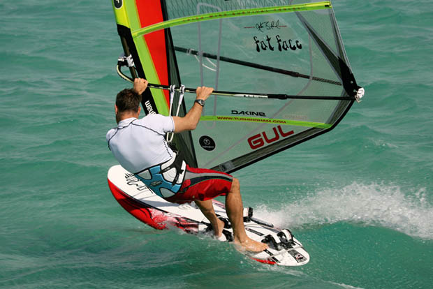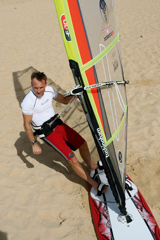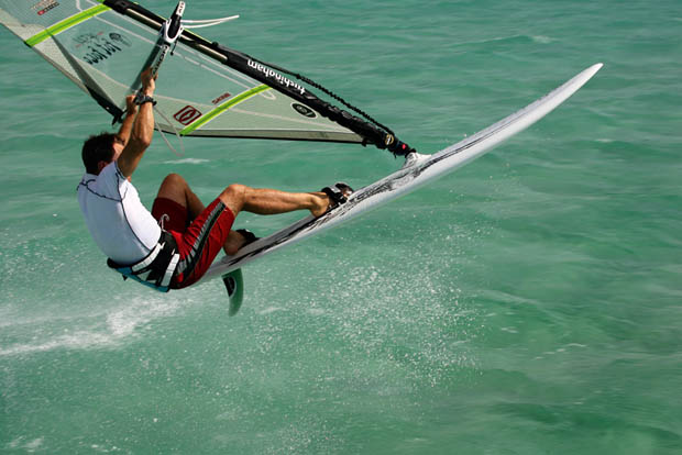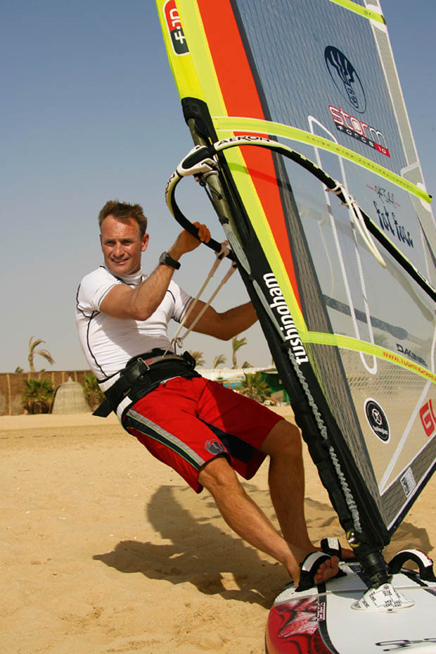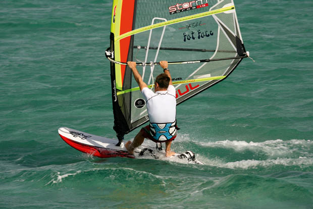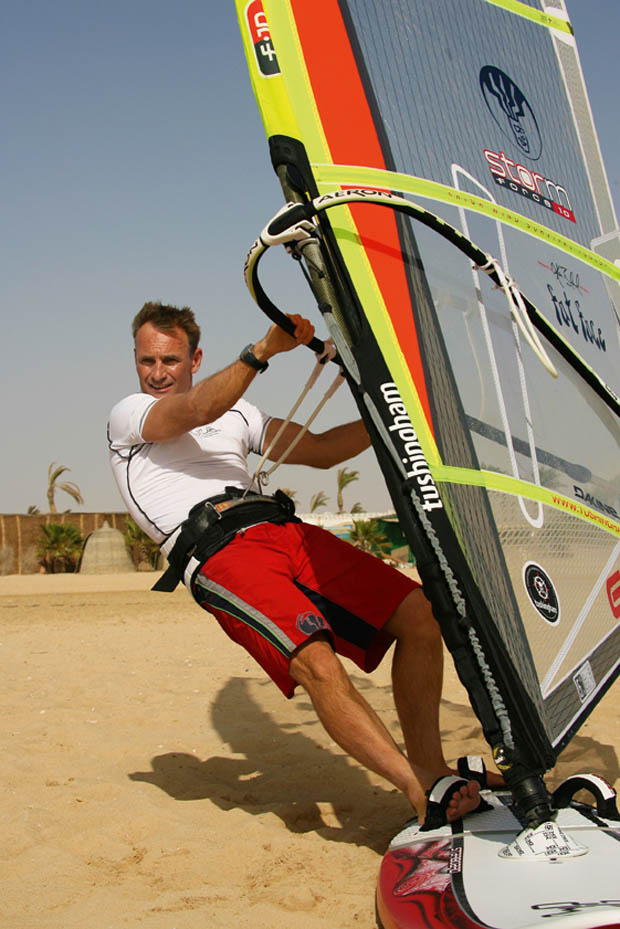 Balance: As ever, oppose the rig’s position and forces by dropping your weight well below the boom, pushing the board ‘away from you’ with the legs, rather than squatting French toilet style.