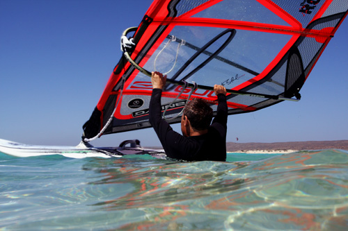 Beachstarts save energy and are a cool way to leave the shore. Don’t delay, learn straight away and work on doing them deeper and deeper! Get the rig high, flex that rear leg and roll your head under the boom.