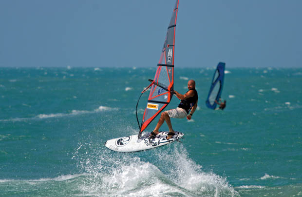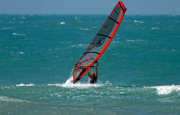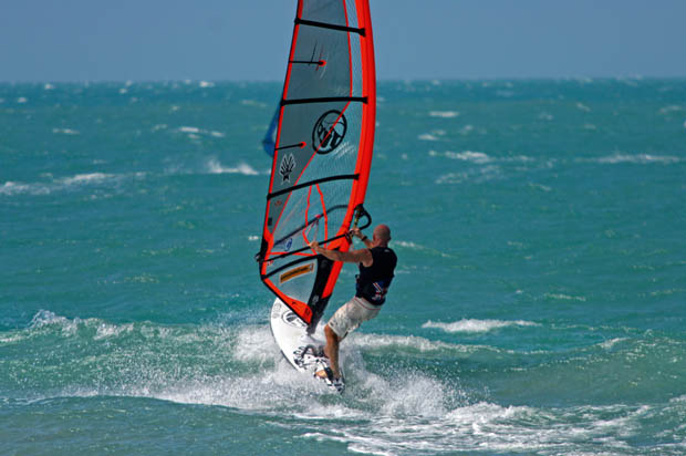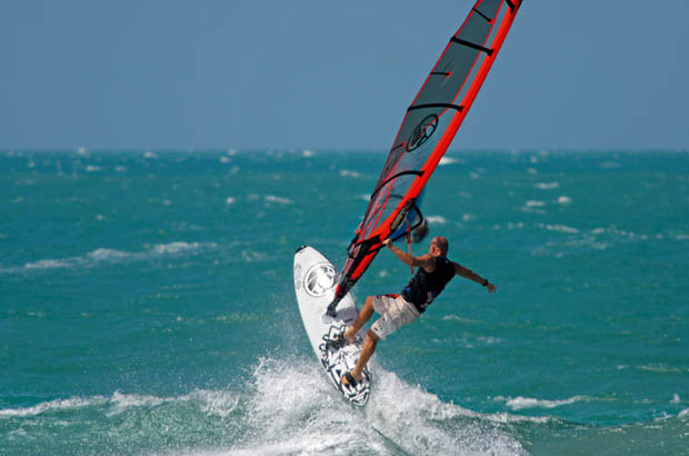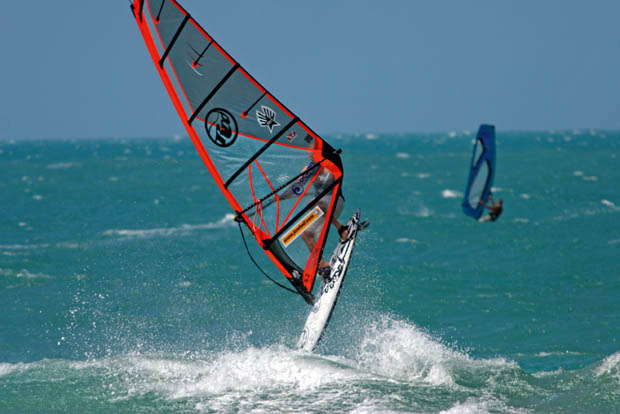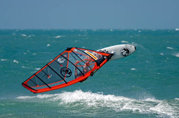 The conditions in Jeri, Brazil, were medium powered with waist-high ramps on a 5.2 Ezzy Wave Panther and RRD Wave Twin 90. After a few runs I’d mapped out where the suitable ramps were and I’d come in, tack, get planing and absorb / pre-jump all the small stuff until I had full speed at the point I was ready to launch into a one-hander. Find your spot or peak, keep making quick runs through it, and keep a good lookout ahead so you’re ready to have it!