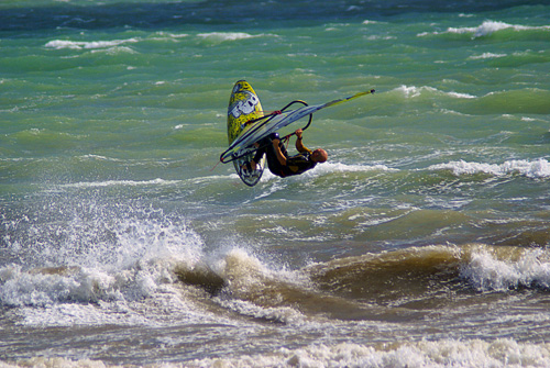 By their very nature wavesailors should be looking for action and covering their ground quickly. In many wave breaks you have to get up to speed quickly just to get out. Where the action is closer in, if you get planing quickly and up to top speed then you’ll score a couple of sweet jumps on the inside. So first up, put a bit of passion and commitment into your early planing and speed. As you now know you’ll need all your fundamental windsurfing skills to be on fine form, so if you’re not planing early find out why and fix it. (And yes, a clinic with me or buying Beginner to Winner will help you.)