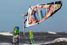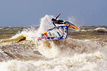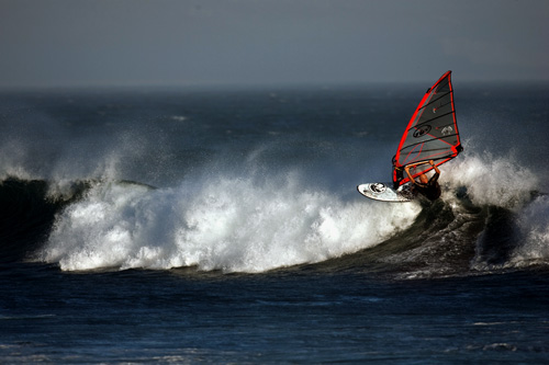 Wavesailing is hugely condition dependent and the good times flow when tide, swell direction and size, wave speed, wind direction and speed all combine to give you some kick-arse action. Cross to cross-off winds give you speed down-the-line, and cross-off especially so, as you have cleaner faces and often longer waves. We benefited from a great swell and the consistent cross-off winds last year in Punta San Carlos (PSC), Baja, and the longer waves gave my crew more opportunities to get into a flow in their turns. So please seek out these conditions to take your riding forward. Cross-off gives you easier, longer turns with plenty of speed, yet it is harder to get more vert. Cross-shore is bumpier and easier for going more vertical and making aerials. Cross-on, our standard in Europe, will be covered later.