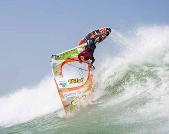 We hit the water. Titoun sends a succession of tweaked pushies, backloops, a one-handed goiter and more crazy stunts. Camille’s first jumps are simply stratospheric, a good 15-metres at least. It is simply amazing what they are pulling off after the long journey from the PWA competition in Pozo Izquierdo (Pozo – Paris – Dohat – Muscat – Masirah).