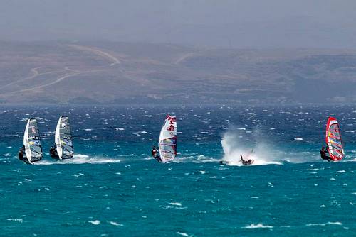 Despite the many times world champion and living legend, Bjorn Dunkerbeck (Starboard, Severne) being one of only four sailors to qualify for every final – the rest being those mentioned above – he failed to capitalise on his awesome speed. It all went horribly wrong for Dunkerbeck at the start of the day when in the race one final he flew off the line moments before the gun, resulting in a PMS as his initial posting for the event. The second race final didn’t see him make much of an improvement, with a seventh being all he could manage. A fifth in race three improved his overall standing, but if he wants to win he’ll need to start scoring bullets.