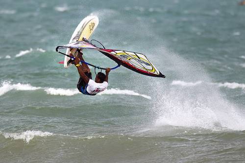 When the dust had settled after the super charged second round of heats, it was the familiar faces of Dieter Van Der Eyken (Starboard / Severne) taking on Taty Frans (Starboard / MauiSails / Mystic) and Philip Soltysiak (Starboard / Dakine) challenging Jose Estredo (Fanatic / North) in the first set of quarter finals. Underdogs Van Der Eyken and Soltysiak were always going to have their work cut out to topple their decorated rivals, but this was not to be their day, despite a super close 2-1 judging decision for Taty Frans over Van Der Eyken, and a spirited performance from Soltysiak.