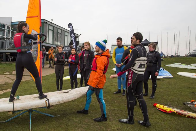 Sunday morning and the combination of RedBull and some unexpected wind worked wonders in blowing away the hangovers from the previous night. The tandem windsurf, kindly provided by Notts County Sailing Club, was a favourite of many, whilst others opted for the vast collections of kit kindly provided by Boardwise and XPLG. Meanwhile, the beginners showed their racing prowess – Giovanna Siadaoui (Southampton) took victory over Kieran Picford (Nottingham) and Robyn Murdoch (Swansea).