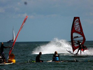 Early on Saturday Trevor Funnell had everything set up ready for a solid session of pro and amateur competitions, with a good turnout of sailors for each category. Conditions were improving with the wind coming in from the west, consistent enough for a set of heats for both the pro and amateur fleets. It was great to see the pros effortlessly producing huge moves and giving all us amateurs something to aspire to! …. And then came the huge Saturday night party with live music… with some more big moves being produced ….but this time on the dance floor … great night!