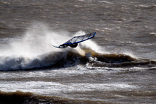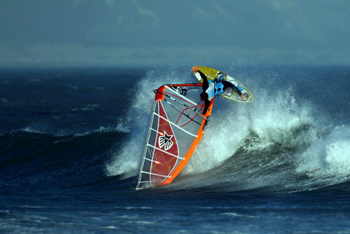 In the men’s, Keith Teboul and Kevin Pritchard progressed from the first heat, Kevin McGilvray and Skylar Haywood moved on from the second heat, with Graham Ezzy and Morgan Noireaux joining them from the 3rd heat. The final sailors were Keith, Graham, Morgan, and Kevin P. The set waves were becoming a little less frequent and Graham and KP got the better longer waves therefore progressing to the super final. This 20 minute heat was truly fantastic to watch; experience vs. youth. Both of them were getting 4 turns and 2 or 3 aerials per wave. Graham scored on the larger wave front, and his additional goiters thrown into the mix gave him the edge to take 1st place.
