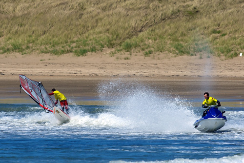 The first day of the BWA Tour was a relaxing affair with folk catching up on their winter travels and latest kit in the glorious Welsh sunshine. As you can gather, no official competition but there was some windsurfing behind wakeboards by Team Starboard and some onshore Turfdog action to keep the crowds entertained.