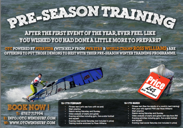 Competitors, start your engines! To dust off the cobwebs and get ready for the 2013 BSA slalom season, OTC powered by Puravida are putting on two pre-season training weekends, that are sure to give you that extra head-start over your rivals on the circuit. World Champ and PWA star Ross Williams will be on hand to put you through your paces and provide tips both on and off the water. Weekends booked in are the 16/17th February and 16/17th March. Spaces are limited so book ASAP to avoid disappointment. For more information, email [email protected], or phone 07817 717904.