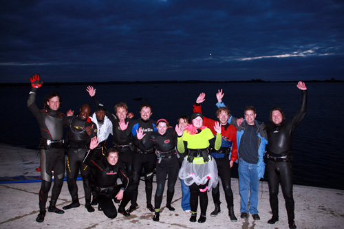 From 5.37am until 8.37pm on a miserable Sunday 2nd May 2010 an intrepid group of windsurfers from Datchet Watersports ensured that they kept at least two windsurfers on the water at all times… Some of the team set themselves personal challenges (Damian Murray and Nick Smith both sailed for over 10 hours each!) or windsurfed in fancy dress – Helen Graham’s Neon gear certainly stood out, as did Becky’s pirate gear… complete with cutlass!An exhausted Becky counted us down to Sunset with beeps on the van horn, and the ten remaining windsurfers headed back to the beach for the last time, to warm up and sink a well-earned beer! Paul Outram, Centre Principal looks back on a bitterly cold and wet, but highly successful day, “We had 34 windsurfers on the water over the course of the day, who sailed a total of 92 hours between them! The money is still coming in, but it looks like we’ll have raised in excess of £2000 between us…! Check out Tim’s blog on our new website (www.datchetwsports.force9.co.uk/w4cr.html) for the full story of the day!”