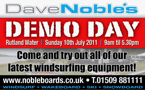 There’s only two days to go until the Dave Noble’s demo at Rutland Water, so why not head down to the Windsurfing Beach at Rutland Water Sports, check out all the latest gear and meet some of the greats from the windsurfing industry? Dave Noble’s Windsurfing is holding the Rutland Demo on Sunday 10th July 2011. Come along to test all the new kit from Simmer / Mistral, North / Fanatic, Starboard / Tushingham, Pryde / JP, and get to meet some of the greats of windsurfing including Nik Baker, Farrel O’Shea, Jamie Gibbs. The demo will run from 9.30am until 5.30pm, as usual the team will be there the night before (Saturday 9th July 2011) from around 5pm for BBQ and beers down at the lake side – come down and join them!