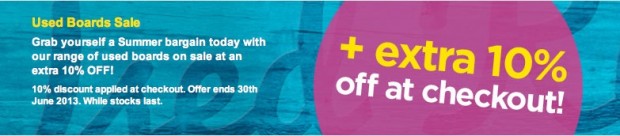 Hurry! Only a few days left before our exclusive 10% off all used boards deal is finished! If you’re looking to buy yourself a new board this summer then don’t miss out on this fantastic offer.