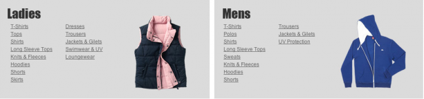 60% off clothes from previous seasons so some amazing prices like Mens T-Shirts from £7.99 and hoodies from £19.60 and ladies t-shirts from £5.99, bikinis from £17 and dresses from £15.99