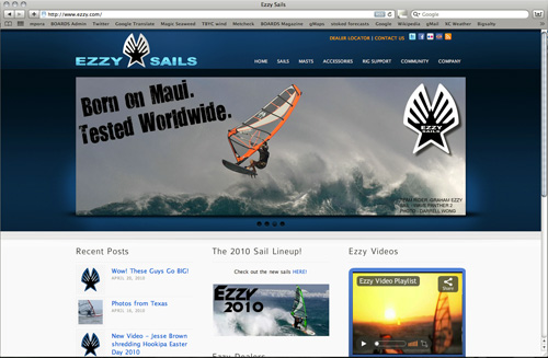 Have a look at the new and improved www.ezzy.com. Ezzy has overhauled the site to embrace community interaction. Now, you can easily post questions directly to David Ezzy while sifting through gobs of new photos and videos of the 2010 products in action. Also, a brand new mast configurator is in place making it easy to determine the best mast configurations for performance and for your wallet. Team rider blogs keep you up to speed with riders from Maui, US, and the UK (thanks to key rider Jem Hall). Have a look at the new site and be sure to check out the new Panther2, Freeride4, and 2010 Infinity.