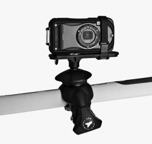Although aimed at the new generation of waterproof / shockproof cameras like the Pentax W90, the Flymount will hold any camera that has a standard tripod mounting point, including lightweight DSLRs.
