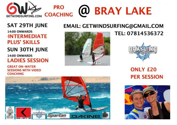Next weekend 29th & 30th June GetWindsurfing will be at Bray Lake giving you the chance to get some quality video coaching. Come along, improve your windsurfing and see what you look like on the water!