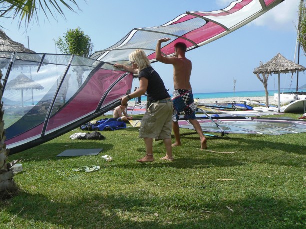 With the new Surf Hotel Board Store built (and the old one cleared to make way for more sun loungers!), it’s time to get the new kit into shape ready for our first guests. It looks as if the wind is beginning to pick up very nicely, with good early season conditions kicking in.