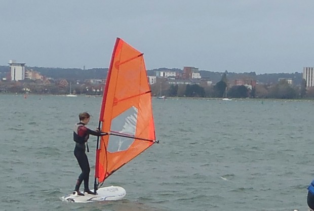 In the afternoon the wind really kicked off and so with some very small sails Adam Scott-Mackie, Milly Joseph and I braved the condition, gaining some really top tips on carve gybes, beach starts and getting in to the foot straps.