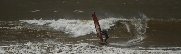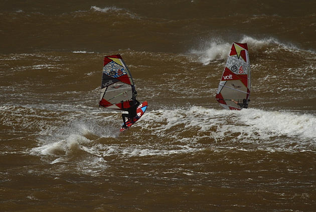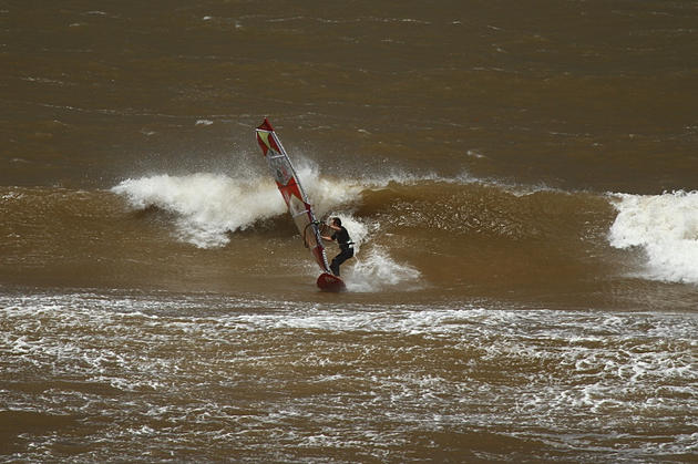 Saturday bought us again big waves and strong winds, but more manageable as it didn’t get more than mast high in the sets. We all managed to spend a long day on the water really improving our riding, again looking to turn more vertical up the waves, improving our timing and wave selection and also trying the occasional jump when the waves allowed (for me I was mainly focusing on getting out safely through the large sets and enjoying the riding on the way in, jumping was to wait for the last day!)