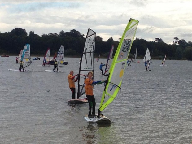 Around 90 young windsurfers from seven teams across the UK took to the Pitsford waters with youngsters from as far afield as Cornwall and Scotland contending with challenging conditions including shifty wind, heavy rain and at times very little wind.