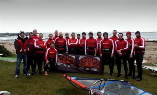 The Tri Service Wave Sailing Championships were run again this year during the week of the 22nd – 26th March and held at Rhosneigr beach on Anglesey. The event was well attended again with a total of 25 sailors from the Army, Royal Navy and Royal air Force making the trip. The event was held over a 5 day period in order to utilise the best wind and wave conditions of the week. The forecast was looking ok for the week with winds forecast form the SSW around 16 – 20 knots most of the week and temperatures of around 10 degrees, which was a bit warmer than last year!!
