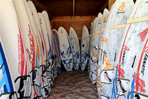 Flag Beach in Corralejo, Fuerteventura and established back in 1988 By Ben Thomas who currently still owns and manages the centre and whose hut was demolished by the local authorities last year, has finally been granted a permission to rebuild. The hut is now up and running and service is back to normal with rescues operating, storage of personal equipment possible and rentals with the new 2010 Fanatic and north kite and windsurf kit.