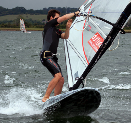 Jon White, not surprisingly won every race in fine style, demonstrating his skill by Duck Gybing his 9.5m sail and raceboard, but further down the fleet competition was fierce