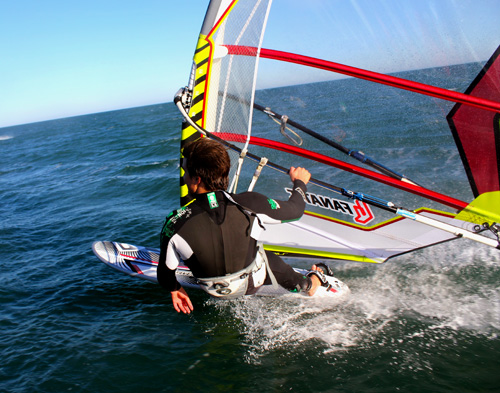 How I started windsurfing: When I was a child, I did sailing competitions with a little boat, but where I live the conditions are often very strong and not good for sailing and I was quickly too tall. I always saw some guys practicing windsurfing at the same spot. One day, I tried and I catched the virus immediatly…