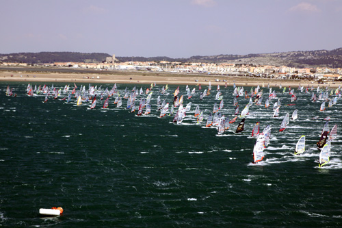 Fanny Aubet, 2009 funboard French champion and slalom world champion of ‘less than 20 years’ category, explains her disappointment of not having participated in today’s race:” That’s too bad, I would have liked to see my performance in these conditions. But I understand the decision of the race officer to limit the start to the top 50 riders as the Tramontane is really strong today. On the other hand, Alizee (16 years) who participated in her first Défi Wind confessed:” In any case I would not have run today. The wind was gusting over 55 knots at the end of the course … I would have never fitted in these conditions!” This safety plan developed by the organization, with the help of lifeboats and firemen, is one of the great strengths of the Défi Wind. The organization team’s experience ensures the smooth running of the competition under the best conditions.